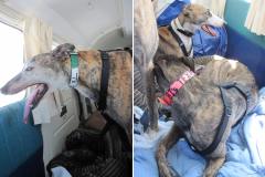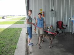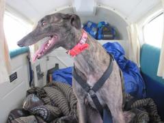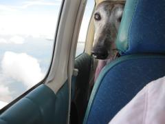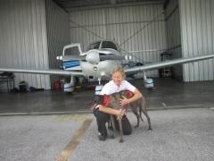 Well, Suz in Cincinnati was looking for a few good women. So, Brigitte arranged for the meeting. She and Jeannine drove Texas Tea up to Sarasota. Or, well, I think Texas Tea drove Jeannine and Brigitte up to Sarasota. Texas Tea then hoped a ride on the plane to the greyhound farm where we picked up Olympia and Mama Shaker. Mike and I thought for sure we’d have at least one pilot in this group. But, no. These gals are so well mannered. Texas Tea left the flying to us and slept. After all, she had already driven Brigitte and Jeannine to Sarasota and was tired. Olympia was always the first in line to get on and off the plane. But she stayed in her seat and was quiet the whole trip.