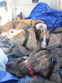 Mama Shaker (brown brindle) had been just like her name says- first moving and shaking on the race track. She did so well that after racing, she had many male suitors. After many litters of puppies, she is now looking for a life of leisure and quiet- preferably house sitting and holding a couch down.