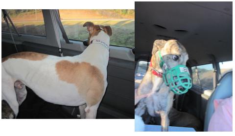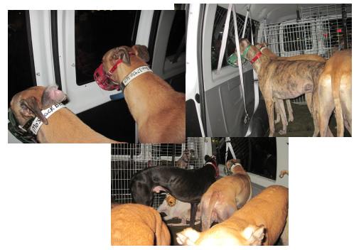 Annie met Marion, who wanted to adopt her, but Annie was spoken for. So little Annie got back in the van, and off we went to the farm. On the drive up, Annie was the queen of the van! On the farm, a very sweet girl named Zabrina joined Annie. The rest of the van was filled with 6 strapping young men- Phantom (black), In the Red (white and fawn), Sneaker (brindle), Jack BNimble (fawn), Hard Rock (fawn), and Fly Boy (fawn).