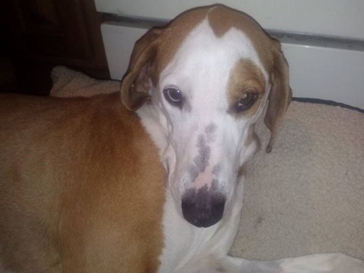 Meet Abbey! I am what you call a 50/50 – half coonhound and half greyhound. In my former life, I was used for breeding field trial pups. I am such a cute girl, but I had never been off the farm in Ohio until the OLP found a really wonderful family for me. Not knowing what to expect or anything, I was very scared and frightened of living inside a house and meeting so many new humans. But I am loving my new family, my soft bed, treats, and getting lots of attention. I feel so loved and so lucky. I can live out my golden years in comfort surrounded by love.