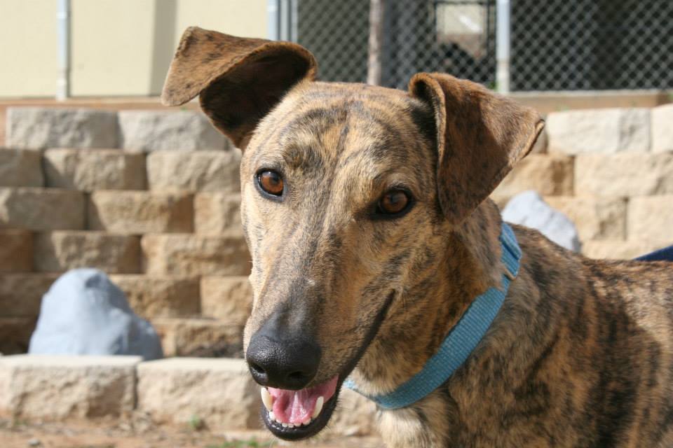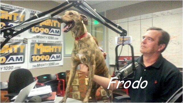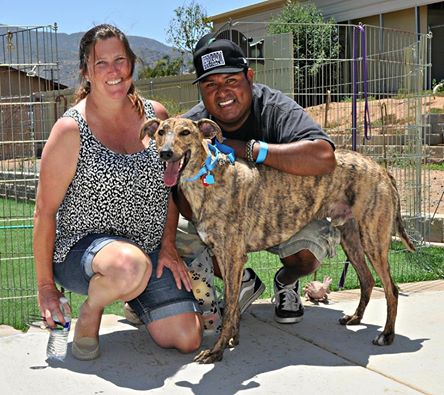 Frodo aka Timmie found his forever home in sunny California through the Greyhound Adoption Center. Frodo and friend Rosie made the long journey from Ohio to California last winter. Frodo was adopted by two teachers who are planning on bringing him to school. Frodo is very talented lurcher and excels at meeting and greeting children. He loves them all. While at the adoption center, Frodo met the special needs children who visited the center every week. He made sure he greeted each child that walked through the doors. If a child was standing off in the corner, Frodo would go comfort him and give kisses. He is an awesome ambassador.
