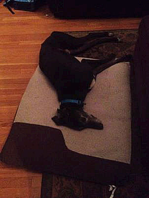 Trigger was on an Ohio farm for most of his life. Rescued Racers in Missouri took in this senior guy and found him a wonderful new family! Trigger is a snuggle kind of guy who loves his soft beds. He has adapted well to living inside a warm house. The picture says it all! Go and be loved Trigger man.